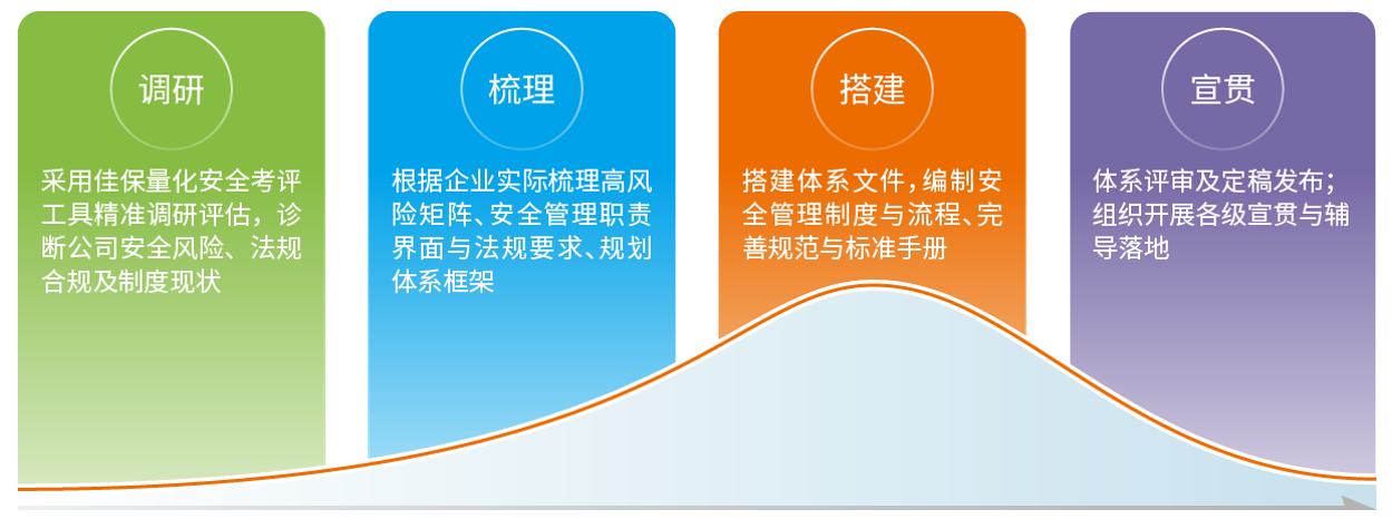 采用佳保安全自主研发的量化安全考评工具,对企业全业务板块、全管理层级开展全面调研评估,精准诊断企业安全生产风险底数、法规合规现状、现有制度体系短板,形成完整的调研诊断报告,明确体系建设的核心方向与重点任务。