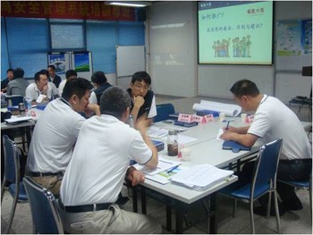 富士康科技集团30多位高级管理者参加了此次培训,课堂上,学员与老师之间积极讨论、互动,各位高级主管对本部门的行为安全推广都积极提出了自己的见解。