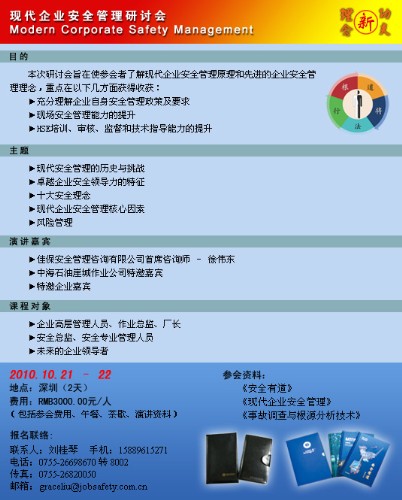 [2010-01-05]为了推广“企业安全年”活动,佳保安全2010公开课程及研讨会计划,日前确定: