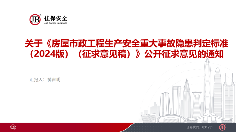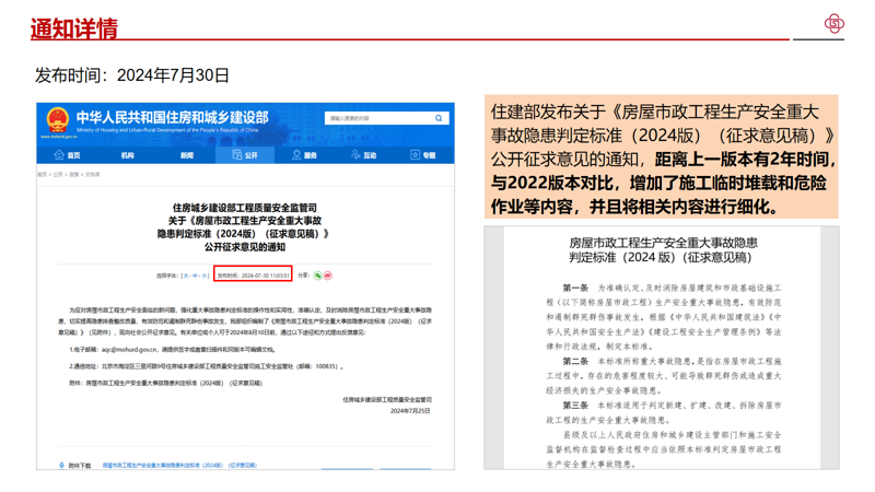 住房城乡建设部工程质量安全监管司关于《房屋市政工程生产安全重大事故隐患判定标准(2024版)(征求意见稿)》公开征求意见的通知