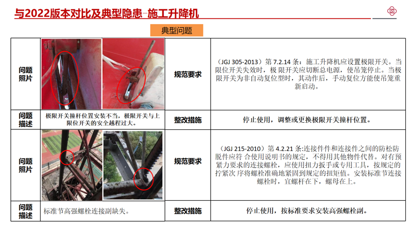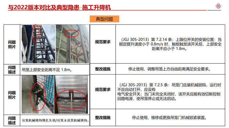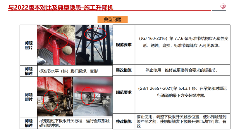 (六)施工升降机附着间距和最高附着以上的最大悬高及垂直度不符合规范要求;
