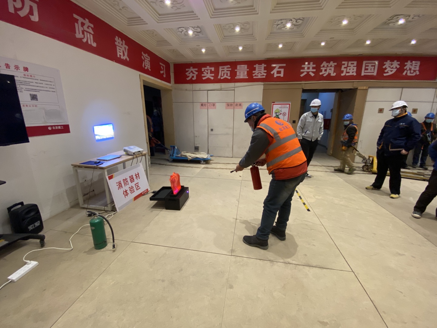 本次消防应急疏散演习、消防知识专题培训及灭火实操演练活动共组织80人参加,尤其是采用火灾模拟设备使每个工人都亲自实践了灭火流程并掌握了灭火技能要点。消防知识考核采用试卷、抢答等方式进行,共有参赛小组6组(每组3人)进行比赛,由建设单位、佳保安全、监理单位、总包单位相关人员形成7人评委小组对参赛小组进行评比,并为前三名颁发了奖品。