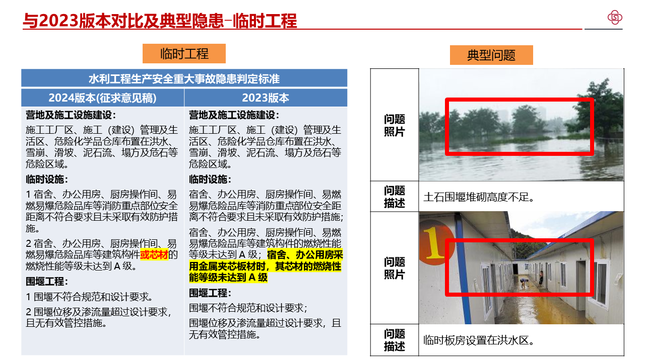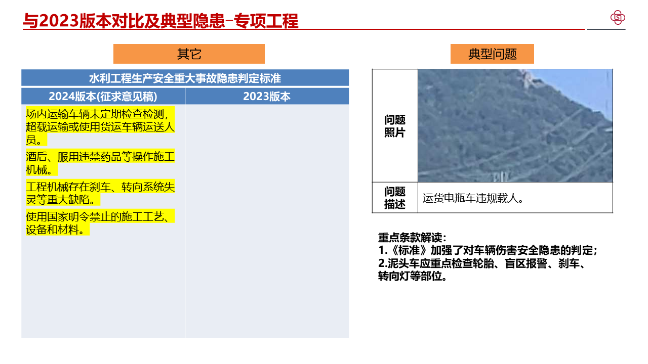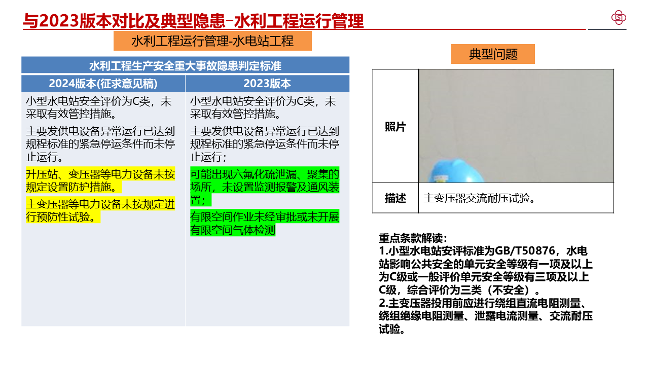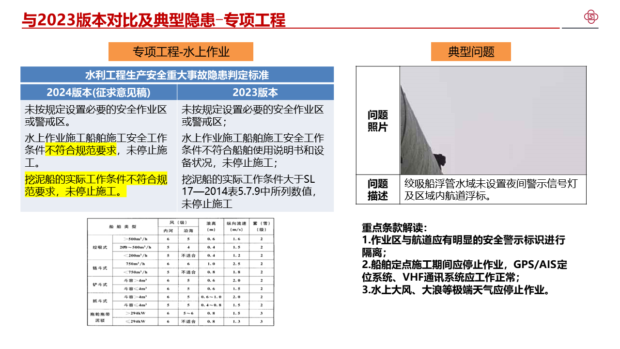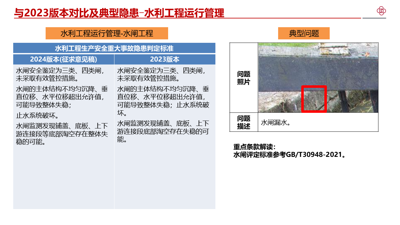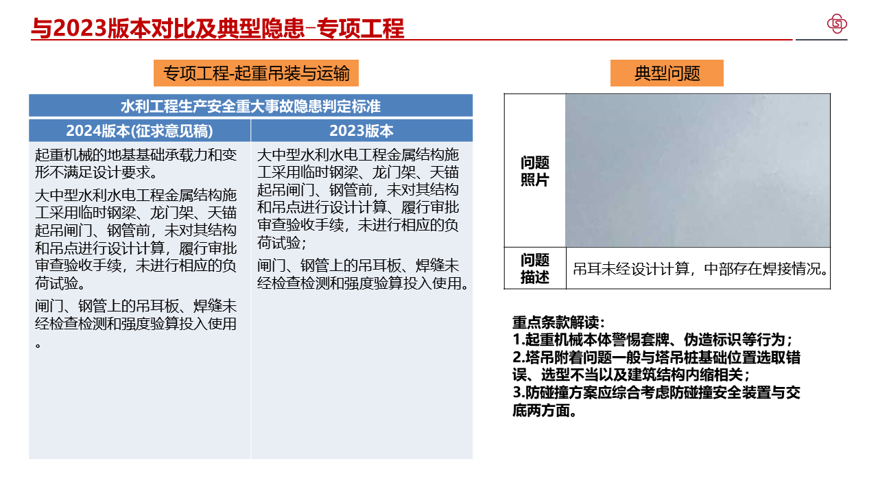 四、加强水利工程生产安全重大事故隐患判定标准宣贯解读,不断提高标准质量。部直属各单位、各级水行政主管部门要组织开展形式多样的解读活动,邀请权威专家等开展宣讲,分级分类持续加强对水利生产经营单位的指导帮扶,切实提升发现问题和解决问题的强烈意愿和能力水平。各省级水行政主管部门要将水利工程生产安全重大事故隐患判定标准纳入水利水电施工企业主要负责人、项目负责人和安全生产管理人员安全生产考试中,作为水利安全生产标准化等级评定的重要内容,督促指导各类水利安全生产社会化服务机构加强水利工程生产安全重大事故隐患判定标准的学习培训。水利部正在将水利工程生产安全重大事故隐患判定标准转化为技术标准,请部直属各单位、各省级水行政主管部门结合水利日常监督检查和行业安全生产工作实际,广泛收集各方面意见建议,及时向监督司报告。