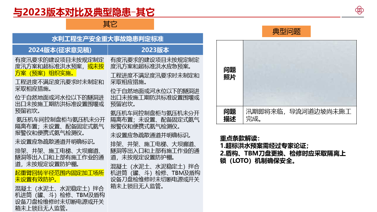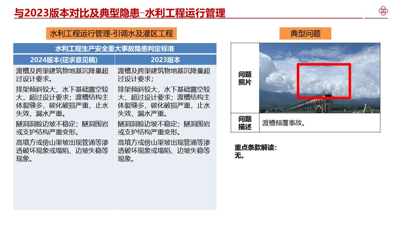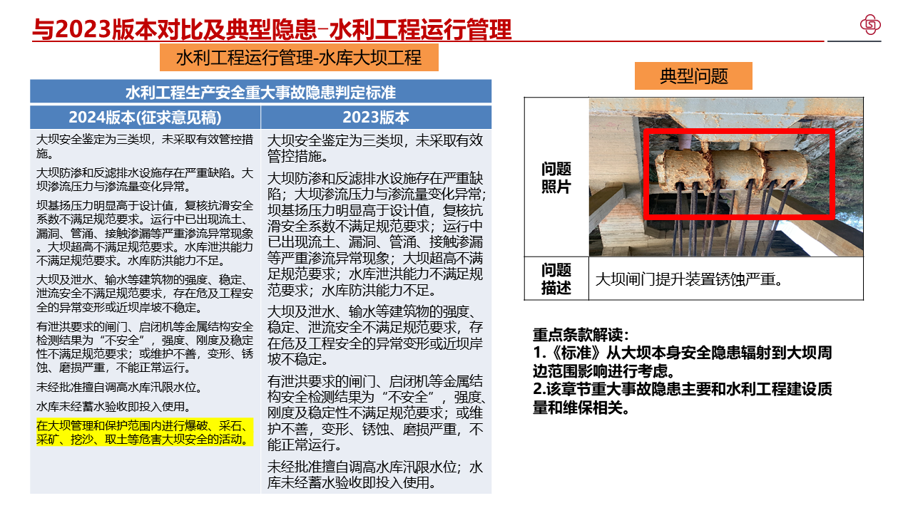 一、充分认识水利工程生产安全重大事故隐患判定标准的重要意义。学好用好重大事故隐患判定标准是推动安全生产治本攻坚三年行动顺利开展、推进重大事故隐患动态清零的重要保障。我部出台了水利工程生产安全重大事故隐患判定标准,修订印发了水利工程生产安全重大事故隐患清单指南(2023版),指导生产经营单位开展重大事故隐患自查自改、指导各级水行政主管部门开展监督检查和监管执法。部直属各单位、各级水行政主管部门要充分认识水利工程生产安全重大事故隐患判定标准的重要意义,切实增强学习运用的主动性、自觉性,以更加强烈的责任感排查整治重大事故隐患,坚决防范遏制重特大事故。