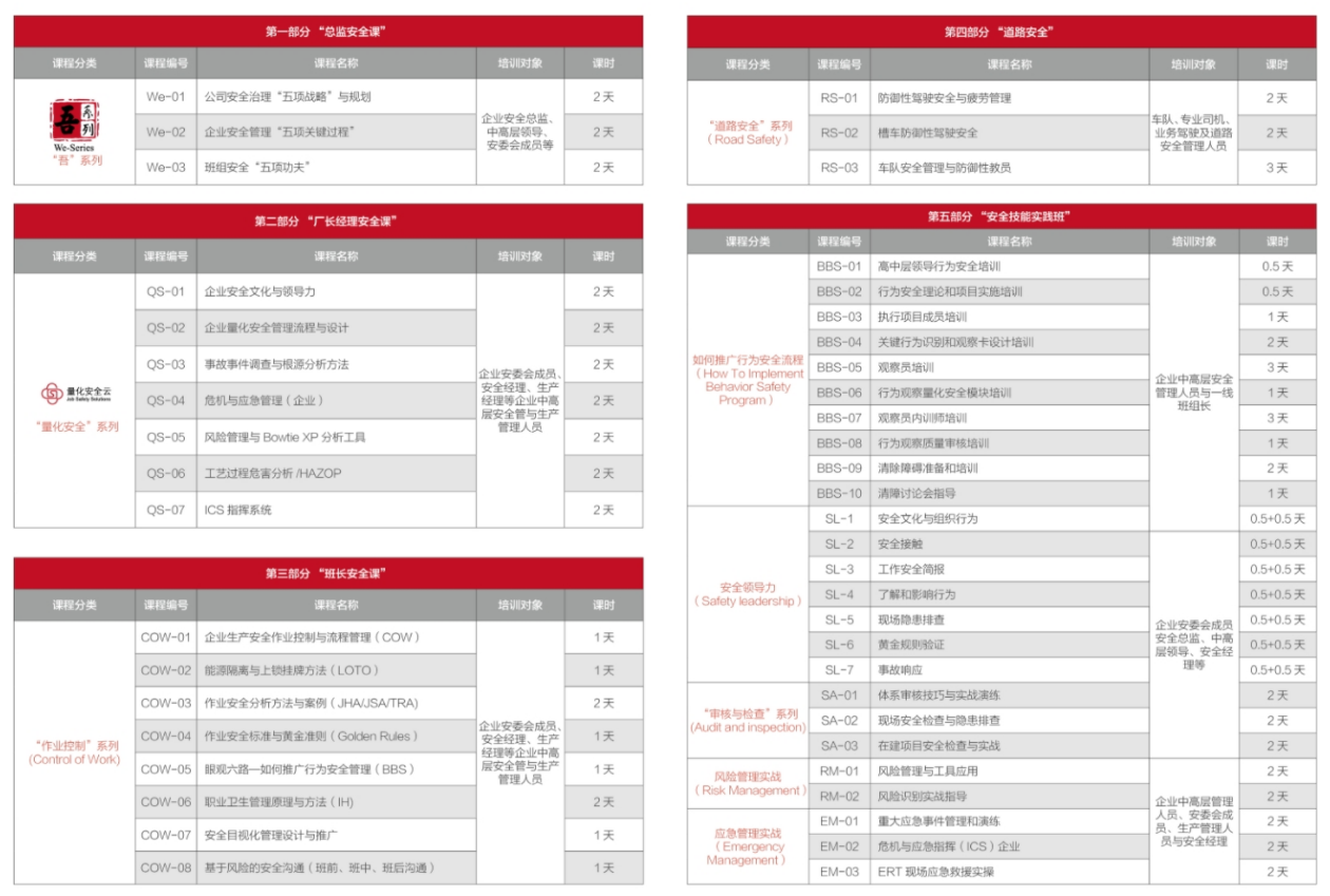 核心产品1:经典"HSE胜任力"提升课程-15门课