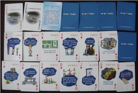 扑克牌主要面向施工现场的一线施工人员,向其传达一些基本的安全管理要求、作业安全要求和安全注意事项,希望通过扑克牌这一载体,使一线施工人员能够在工作之余,了解安全要求,寓教于乐,达到加强施工人员安全意识的目的。