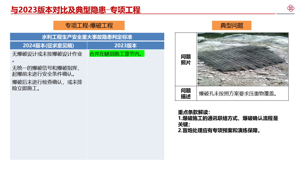 四、加强水利工程生产安全重大事故隐患判定标准宣贯解读,不断提高标准质量。部直属各单位、各级水行政主管部门要组织开展形式多样的解读活动,邀请权威专家等开展宣讲,分级分类持续加强对水利生产经营单位的指导帮扶,切实提升发现问题和解决问题的强烈意愿和能力水平。各省级水行政主管部门要将水利工程生产安全重大事故隐患判定标准纳入水利水电施工企业主要负责人、项目负责人和安全生产管理人员安全生产考试中,作为水利安全生产标准化等级评定的重要内容,督促指导各类水利安全生产社会化服务机构加强水利工程生产安全重大事故隐患判定标准的学习培训。水利部正在将水利工程生产安全重大事故隐患判定标准转化为技术标准,请部直属各单位、各省级水行政主管部门结合水利日常监督检查和行业安全生产工作实际,广泛收集各方面意见建议,及时向监督司报告。